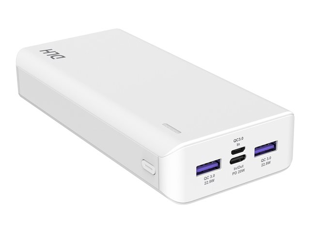 Description du produit DLH banque d'alimentation - 20 Watt Type de Produit Banque d'alimentation Dimensions (LxPxH) 14 cm x 6.9 cm x 2.8 cm Poids 423 g Couleur Blanc Type de prise Total 3 sur le câble : USB, USB-C Tension requise 5 / 9 / 12 V Tension fournie 5 / 9 / 12 V Courant électrique max. 4.5 A Technologie de charge rapide Power Delivery, Quick Charge 3.0 Batterie 20000 mAh Alimentation fournie 20 Watt Mode de fonctionnement des appareils électriques PD (USB-C) - 20 W - 5/9/12 V - 2.4 A