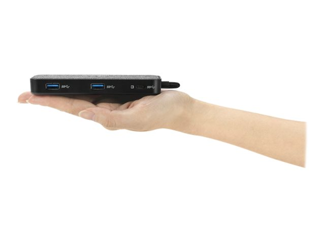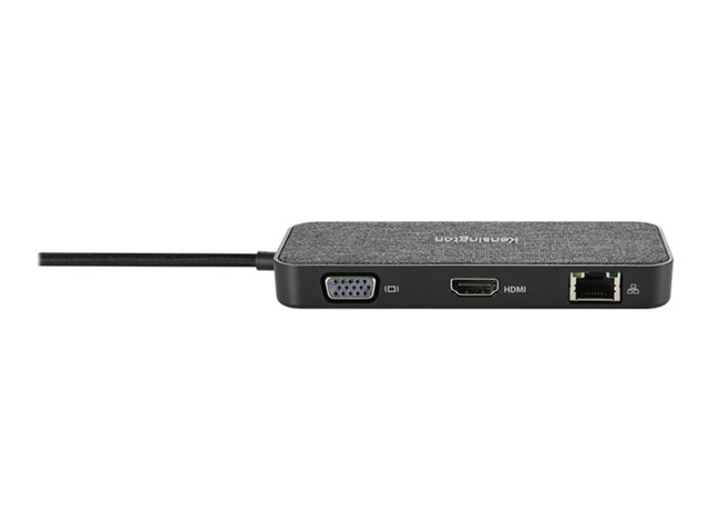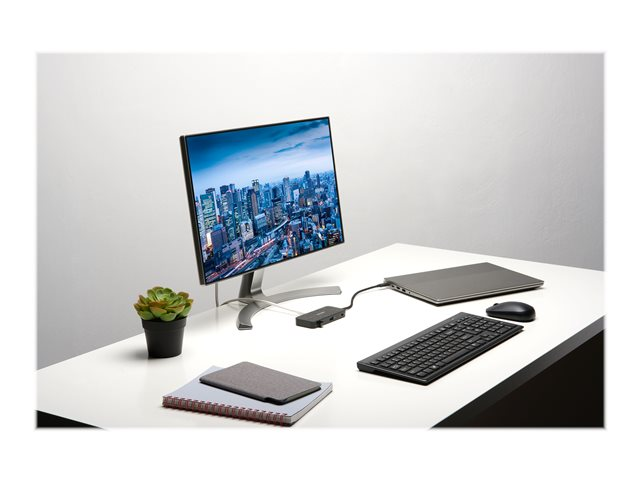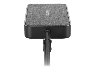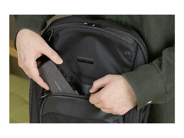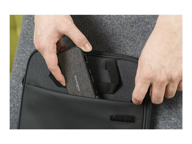 La station d'accueil mobile et compacte idéale ! La SD1650P offre un transfert d'alimentation jusqu'à 100 W, une sortie vidéo 4K (HDMI à 30 Hz) ou 1080p (VGA Full HD à 60 Hz) et six ports pour une meilleure efficacité en déplacement (dont 2 ports USB-A 3.2 Gen1 à 5 Gbits/s, 1 port USB-C 3.2 Gen1 et 1 port Ethernet 1 Gbit/s) aux appareils sous Win/Mac/Chrome/iOS/Android. Compatible avec les iPad USB-C et Samsung DeX, pour une expérience similaire à celle avec un ordinateur depuis une Samsung Galaxy, Note et Tab. Inclut des clips détachables pour ranger le câble de 28 cm inclus. Garanti trois ans, pour plus de tranquillité d'esprit sachant que vous êtes couvert par Kensington.