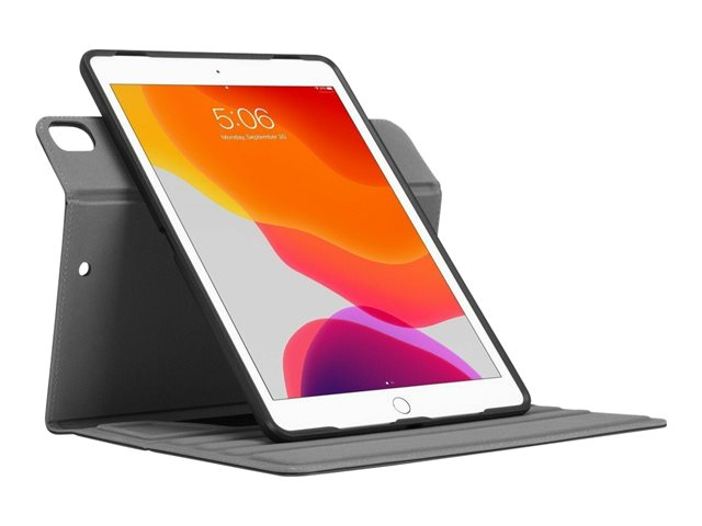 La gamme Targus Versavu à succès revient avec un étui pour l'iPad Pro 10,5 pouces et iPad 10,2 pouces. Comprend une coque rotative ajustée, qui offre une orientation mains libres en mode portrait ou paysage permettant d'accéder aux ports de l'iPad et à l'appareil photo. La technologie SoundScoop intégrée à l'étui autour des haut-parleurs de votre appareil améliore et dirige le son vers vous. La couverture avant est dotée d'un intérieur doux pour protéger l'écran de l'appareil et de rainures profondes dans la mousse pour fournir des angles permettant une vision et une frappe confortables. Ce design d'étui emblématique révèle le célèbre logo de l'iPad Apple au dos de votre appareil lorsque vous l'utilisez.