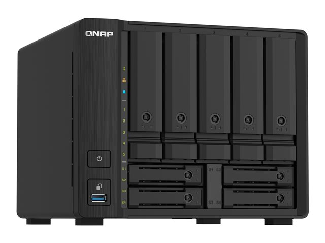 Le TS-932PX intègre neuf baies de lecteur dans les dimensions d'un NAS à 5 baies. Grâce à cinq baies de lecteur 3,5 pouces SATA 6 Gbit/s et à quatre baies 2,5 pouces SATA 6 Gbit/s, le TS-932PX offre la possibilité de créer une infrastructure hybride disque dur/SSD afin de booster les performances des applications. Avec deux ports réseau 10GbE SFP+ et deux 2,5GbE, le TS-932PX prend en charge les réseaux de prochaine génération pour renforcer les applications exigeantes en bande passante et pour offrir un accès et un partage de fichiers plus fluides.