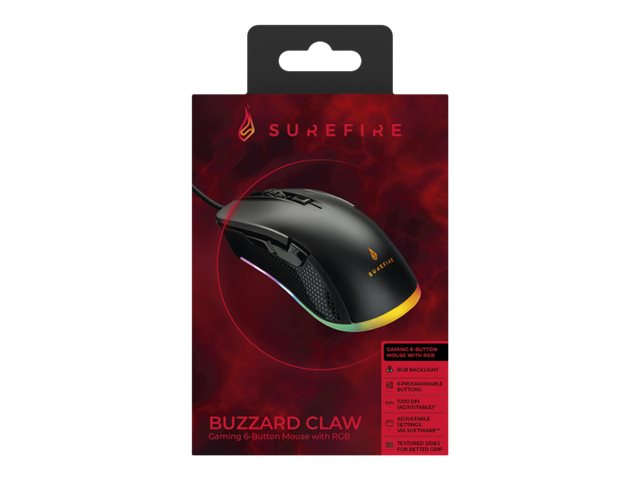 Super rapide, très sensible - la souris gaming Buzzard Claw de SureFire offre une précision extrême pour une exécution gagnante.