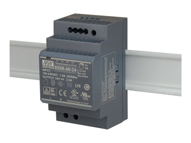 Description du produit D-Link - alimentation électrique - 60 Watt Type de périphérique Alimentation électrique - montable sur rail DIN Tension de sortie DC 24 V Capacité d'alimentation 60 Watt Dimensions (LxPxH) 5.25 cm x 5.45 cm x 9 cm Garantie du fabricant Garantie de 3 ans -