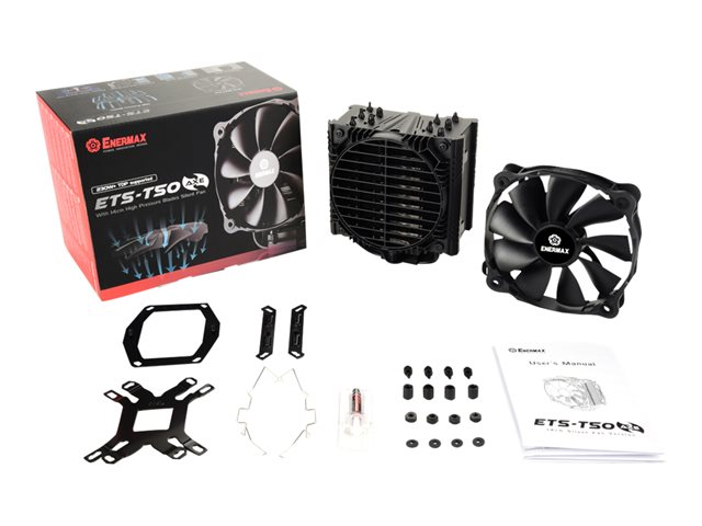 L'ETS-T50 AXE Silent Edition est un refroidisseur de processeur haute performance doté d'une capacité de refroidissement allant jusqu'à 230W TDP, et de technologies de pointe. La conception asymétrique avec cinq caloducs de 6 mm et la technologie du Heat Pipe Direct Touch assurent un transfert de chaleur rapide et permet l'installation de modules RAM élevés. Le refroidisseur est équipé d'un ventilateur ENERMAX de 14 cm avec la technologie brevetée Twister Bearing.