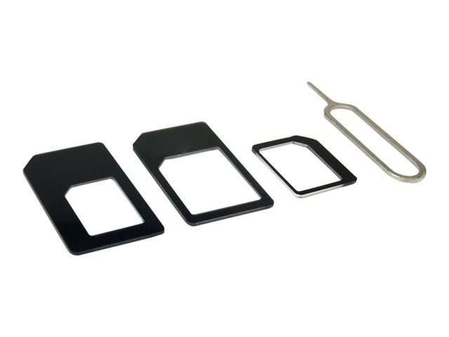 Description du produit DLH - kit d'adaptateurs de carte SIM pour téléphone portable Type de Produit Kit d'adaptateurs de carte SIM Destiné à Téléphone portable Contenu de l'emballage Outil d'éjection de carte SIM, adaptateur de cartes nano-SIM vers micro-SIM, adaptateur de cartes nano-SIM vers SIM, adaptateur de cartes micro-SIM vers SIM -
