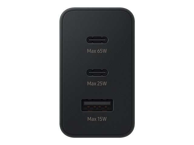 65 Watt - 3 A - PD 3.0, SFC 2.0 - 3 connecteurs de sortie (USB, 2 x USB-C) - noir