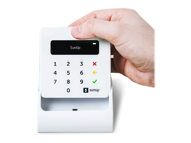 En choisissant le SumUp Air couplé à sa station de recharge, votre lecteur de carte bancaire est prêt à encaisser à tout moment. De plus, il vous permet d'avoir un comptoir élégant et de montrer de manière visible, à vos clients, que vous acceptez les cartes.