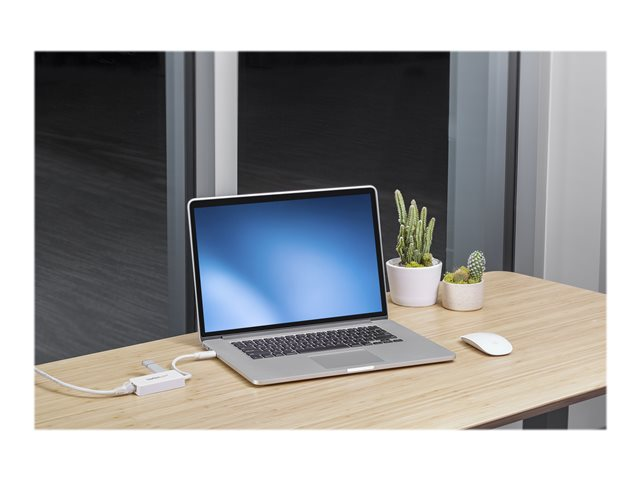 Convertisseur USB vers RJ45 avec 1 port USB intégré - M/F - Blanc - Adaptateur réseau - USB 3.0 - Gigabit Ethernet - blanc