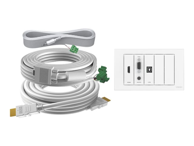 Kit plaque modulaire avec connecteurs enclenchables et câbles - HD-15, fiche mini-phone Stéréo 3,5 mm, HDMI, USB Type B - blanc mat - à commande double