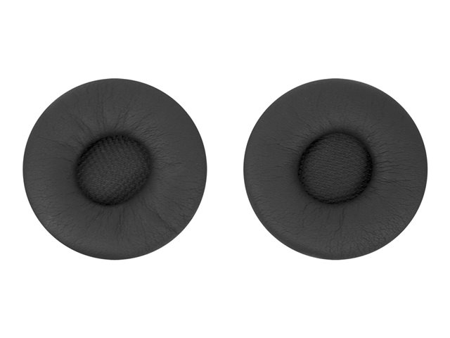 Larges coussinets d'oreille en cuir pour Jabra PRO 9400 (diamètre de 5,5 cm). Disponibles en option, ces larges coussinets d'oreille offrent une réduction de bruit passive supplémentaire de 3 à 5 dB par rapport aux modèles standard, ainsi qu'un meilleur confort.
