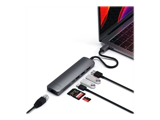 Satechi USB-C Slim Multi-Port with Ethernet Adapter - Station d'accueil - USB-C - HDMI - 1GbE