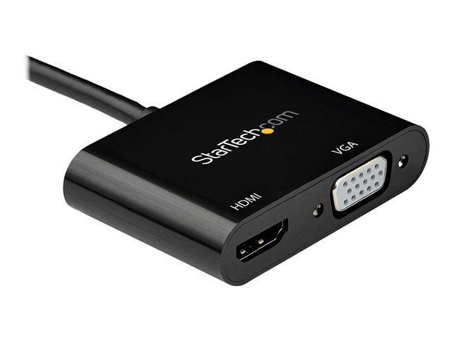 StarTech.com Mini DisplayPort to HDMI VGA Adapter, mDP 1.2 HBR2 to HDMI 2.0 (4K 60Hz) or VGA 1080p Video Converter Dongle, Mini DP to HDMI or VGA Monitor Adapter, Thunderbolt 2 Compatible - Multiport Video Dongle (MDP2VGAHD20) - Premium High Speed - adaptateur vidéo - Mini DisplayPort mâle pour HD-15 (VGA), HDMI femelle - noir - support 4K