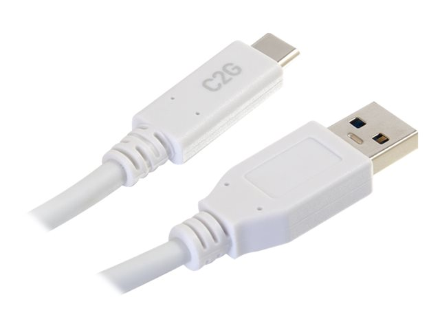 C2G 3ft USB C 3.0 to USB Cable - USB C to USB A - M/M - Câble USB - USB type A (M) pour 24 pin USB-C (M) - USB 3.1 - 30 V - 3 A - 91.4 cm - blanc 28835