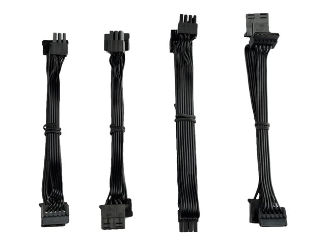 Design semi-modulaire avec câbles noirs plats et flexibles.