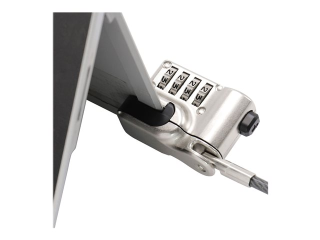 Le câble peut être rapidement fixé au pied du Microsoft Surface Pro et Surface GO et retiré, sans colle ni outils. La sécurité sans clé ni compromis : choisissez votre code personnel à 4 chiffres parmi 10 000 combinaisons possible. Grâce à la fonction "Push-to-lock", le cadenas peut également être verrouillé. Grâce à la bande Velcro pratique, le câble peut être enroulé pour gagner de la place pendant le transport et le rangement.