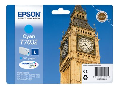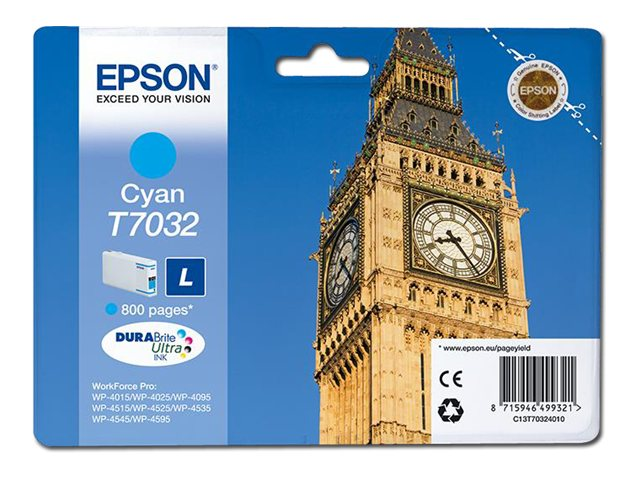 Epson T7032 - 9.6 ml - taille L - cyan - original - blister - cartouche d'encre - pour WorkForce Pro WP-4015, WP-4025, WP-4095, WP-4515, WP-4525, WP-4535, WP-4545, WP-4595