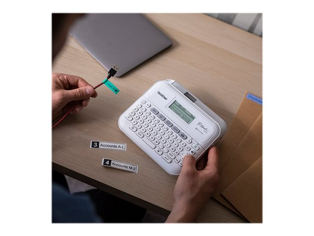 Brother P-Touch PT-D410VP - Étiqueteuse - Noir et blanc - transfert thermique - 18 mm de large - 180 dpi - jusqu'à 20 mm/sec - USB - outil de coupe - impression miroir, impression verticale - blanc