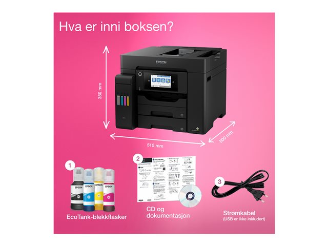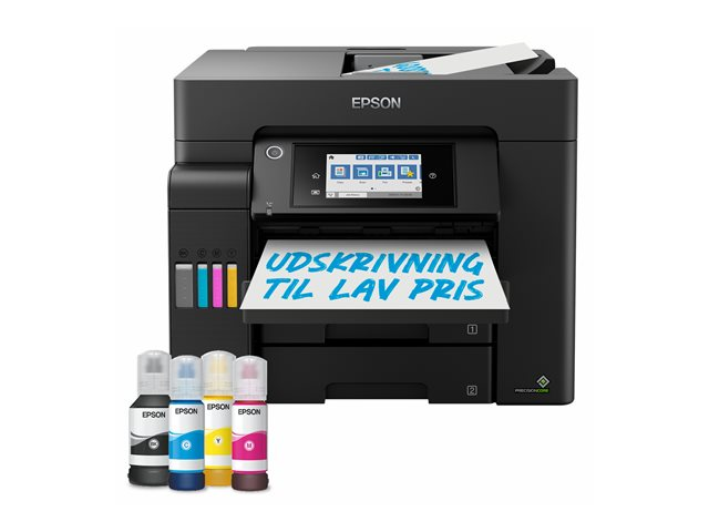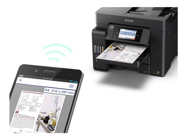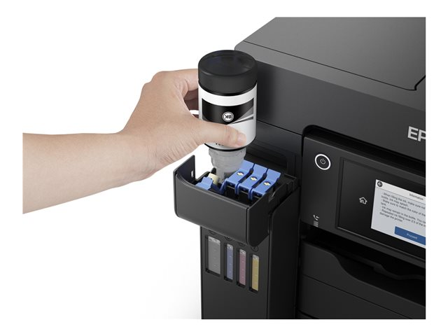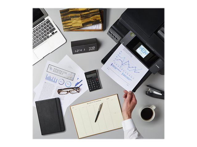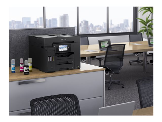 En plus d'offrir un coût d'impression par page extrêmement faible, cette imprimante EcoTank simple d'utilisation réalise vos impressions, numérisations, copies et fax. Les travaux A4 peuvent être réalisés rapidement grâce à la haute vitesse d'impression et de numérisation, aux deux bacs papier A4 à chargement frontal de 250 feuilles, au chargeur de papier arrière de 50 feuilles et au chargeur automatique de documents (ADF) A4 de 50 feuilles. Imprimez selon vos préférences grâce à l'impression mobile, à la connexion Ethernet et à un écran tactile LCD de 10,9 cm.