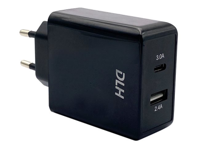 DLH DY-AU2640B - Adaptateur secteur - 24 Watt - 4.8 A - 2 connecteurs de sortie (USB, 24 pin USB-C) - noir