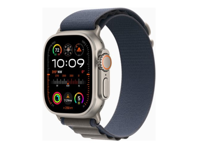 Apple Watch Ultra 2 - 49 mm - titane - montre intelligente avec Boucle Alpine - textile - bleu - taille du bracelet : L - 64 Go - Wi-Fi, LTE, UWB, Bluetooth - 4G - 61.4 g MREQ3NF/A