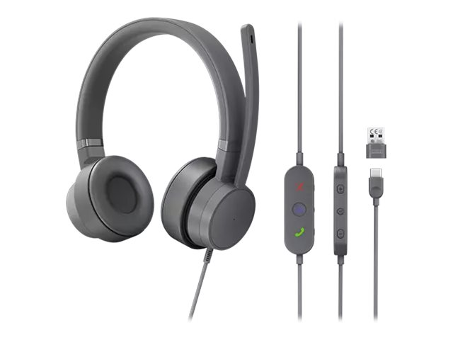Lenovo Go - Micro-casque - sur-oreille - filaire - Suppresseur de bruit actif - USB-C - gris orage - Certifié pour Microsoft Teams - pour IdeaPad S340-14; ThinkCentre M90a Gen 3; M90a Pro Gen 3; M90t Gen 3; ThinkCentre neo 70