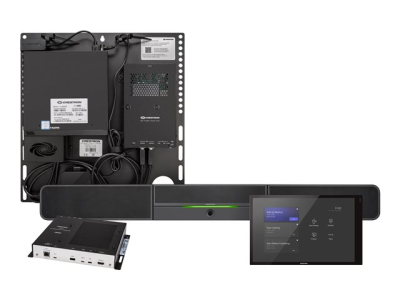 Le système Crestron Flex UC-BX30-T-WM offre une solution de salle de vidéoconférence à utiliser avec la plateforme de communication intelligente Microsoft Teams Rooms. Il prend en charge un ou deux écrans vidéo1 et comprend un écran tactile mural de 10,1 pouces, un transmetteur de présentation UC, un ensemble de supports UC, ainsi qu'une barre de son et une caméra intelligentes de vidéoconférence Crestron UC.