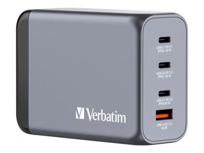 Verbatim - Adaptateur secteur - GaN - 240 Watt - 5 A - PD 3.0, QC 3.0, Power Delivery 3.1, PD/PPS - 4 connecteurs de sortie (USB type A, 3 x USB-C)