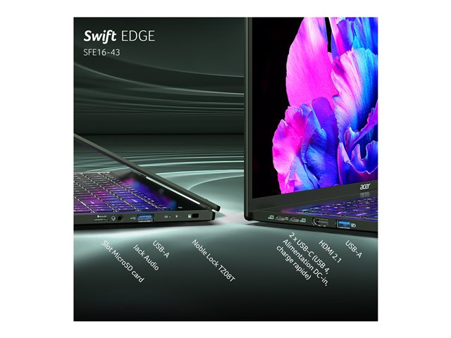 À la frontière entre performance et portabilité, le Swift Edge 16 se caractérise par un design fin et léger, avec un matériel équipé pour répondre aux exigences actuelles en matière d'intelligence artificielle et au-delà.