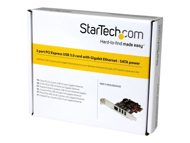 StarTech.com Carte PCI Express à 3 ports USB 3.0 et 1 port Gigabit Ethernet avec UASP - Adaptateur PCIe 3x USB 1x GbE - Adaptateur USB / réseau - PCIe 2.0 profil bas - USB 3.0 x 3 + 1000Base-T x 1 PEXUSB3S3GE