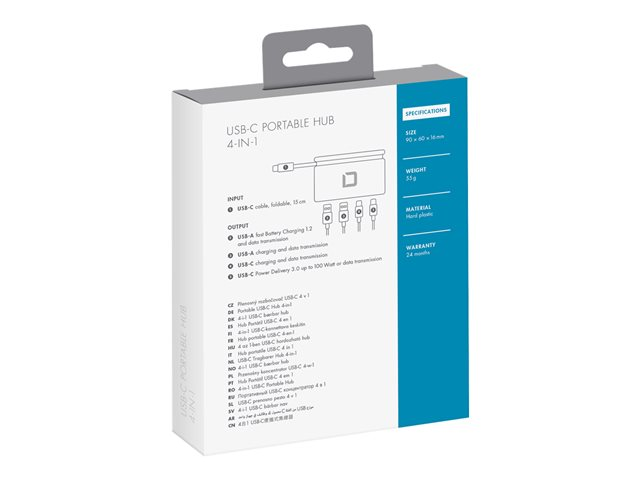 DICOTA USB-C Portable Hub 4-in-1 - Concentrateur (hub) - 2 x USB-C + 2 x SuperSpeed USB - de bureau