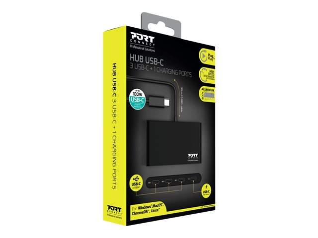 PORT Connect - Concentrateur (hub) - 3 x USB-C + 1 x USB-C (alimentation électrique) - de bureau