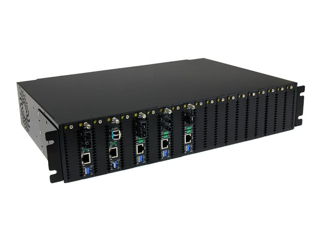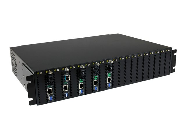 Pour plus de polyvalence, ce convertisseur Ethernet fibre optique permet un fonctionnement autonome ou une installation dans le châssis monté en rack 2U à 20 fentes (ETCHS2U), ainsi que dans une fente SFP remplaçable.