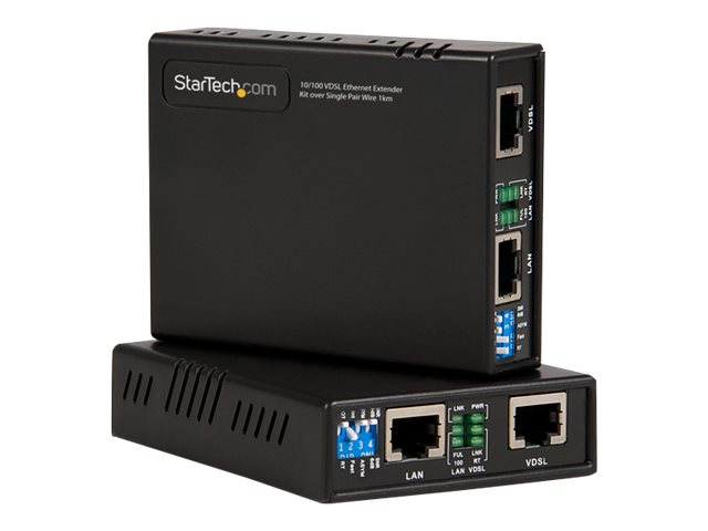StarTech.com Kit prolongateur Ethernet VDSL2 sur câble à une paire - Ethernet extender 10/100 Mb/s - Extendeur Ethernet - 1 km - Modem courte distance - 100Mb LAN, Ethernet over VDSL - 10Base-T, 100Base-TX - jusqu'à 1 km 110VDSLEXTEU