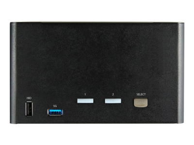 Ce commutateur KVM 2 ports associe des fonctionnalités d'affichage numérique 4K 60 Hz au contrôle d'un maximum de deux ordinateurs connectés.