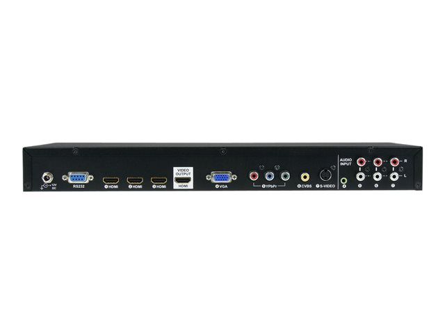 Solution tout-en-un, le processeur-convertisseur vidéo inclut la prise en charge d'une résolution complète à haute définition de 1080p ainsi que de l'audio numérique et analogique. En outre, il est équipé de la télécommande de série RS232 et inclut une télécommande infrarouge pratique permettant de commuter entre les sources vidéo.